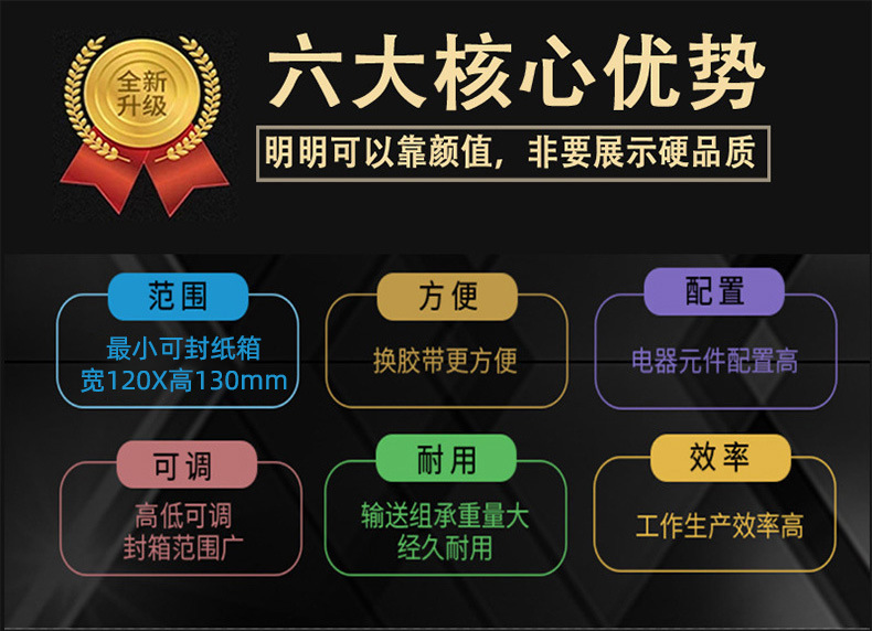 - 不同尺寸規格:可通過調節適應不同大小的箱子,無論是較小的快遞紙箱還是較大的工業包裝箱,都能進行有效的封箱和打包1.