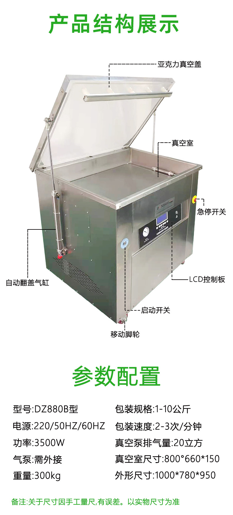 • 增加保鮮效果:在真空環境下,能夠更好地保持食品的新鮮度、口感和營養成分,延長食品的保質期,減少食品浪費.