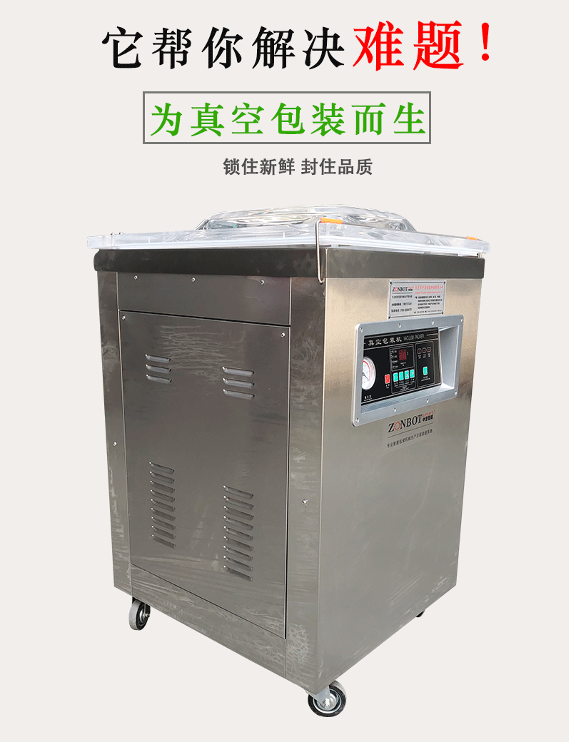 單室內抽真空包裝機可對酸菜、粽子、五金配件等產品抽真空封口包裝,密封包裝延長保質期