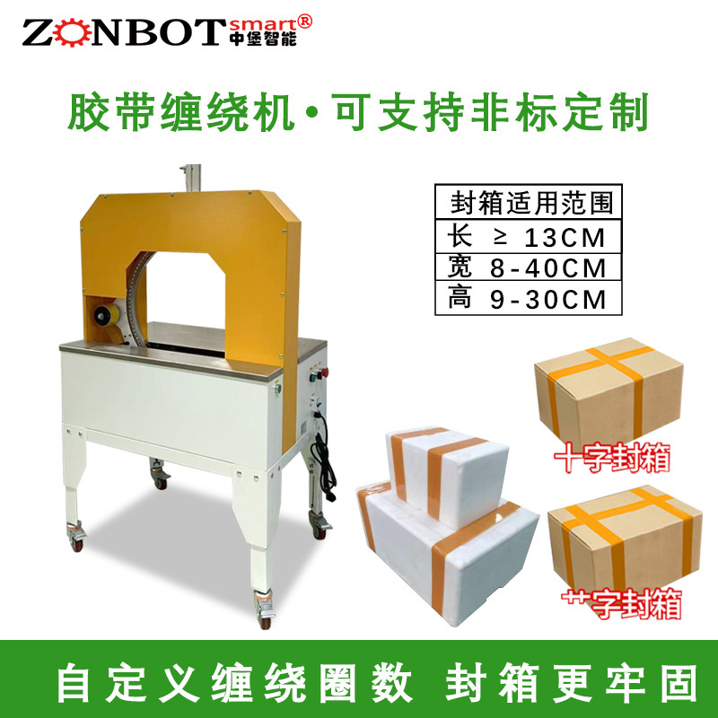 - 膠帶材質:常見的膠帶材質有 BOPP、PVC、PET 等。不同材質的膠帶粘性、柔韌性和拉伸強度不同,需要根據(jù)包裝物品的特性和運輸環(huán)境選擇合適材質的膠帶,并確保纏繞機能夠適應該材質膠帶的纏繞要求。
