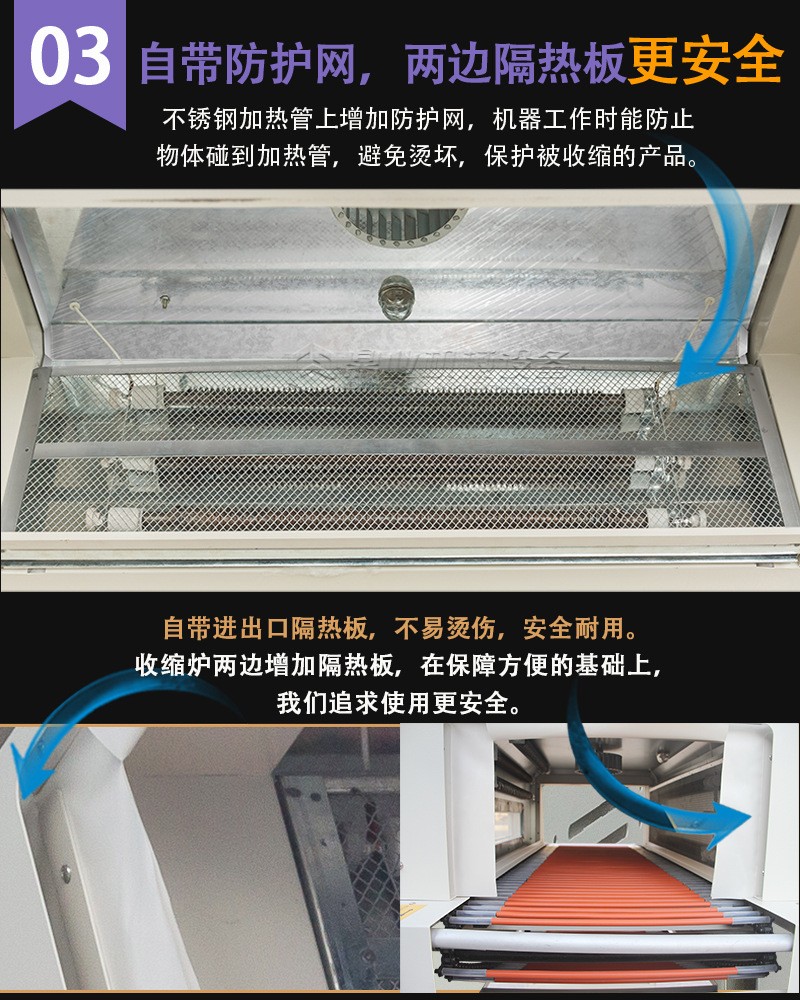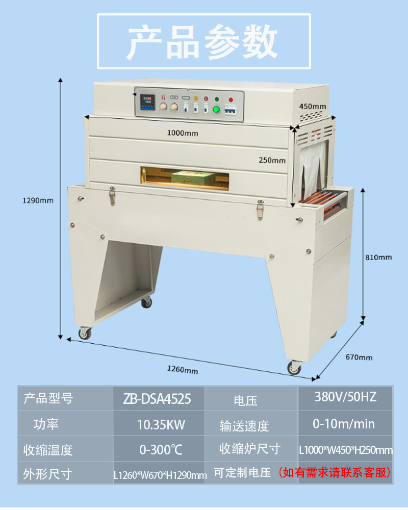 - 加熱功率:功率越大,升溫速度越快,能夠在更短的時間內使熱收縮膜達到收縮溫度,從而提高包裝效率。例如,高功率的熱收縮包裝機可以在幾秒鐘內將收縮膜加熱至合適溫度,而低功率的設備可能需要更長時間。