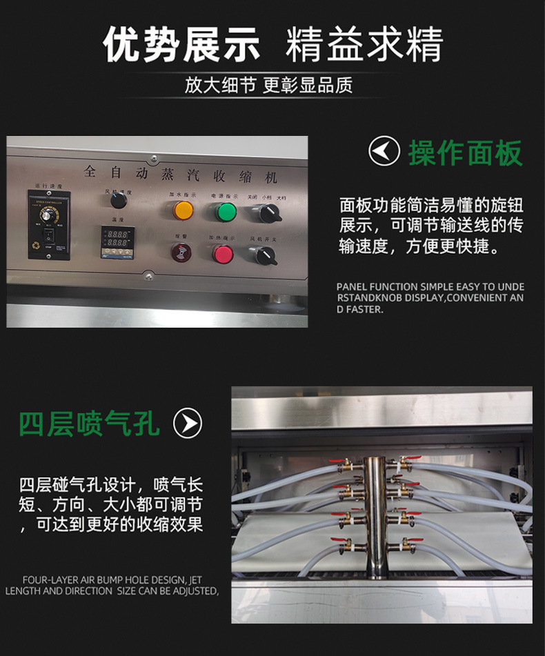 - 高效節(jié)能:在保證良好收縮效果的同時(shí),通過(guò)合理的設(shè)計(jì),如優(yōu)化保溫箱體結(jié)構(gòu)、精確的溫控系統(tǒng)等,有效減少了熱量的損失,降低了能源消耗,提高了生產(chǎn)效率。