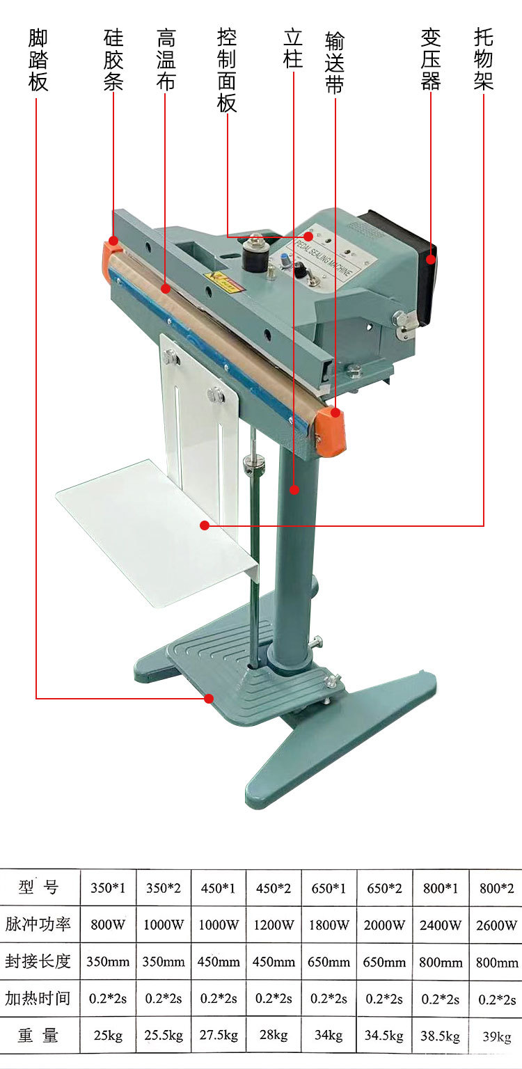 鋁架腳踏封口機(jī)可以用于多種包裝材料的封口,如常見的塑料薄膜(聚乙烯、聚丙烯等)、鋁箔復(fù)合膜等