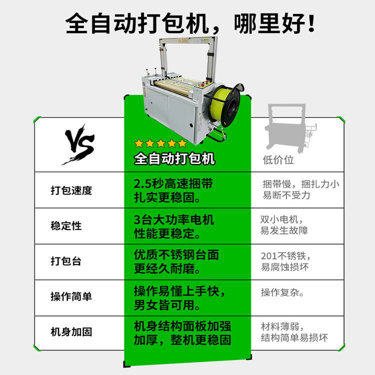 - 節省人力成本:全自動打包機幾乎可以獨立完成打包工作,只需要少量的人工進行物品的放置和機器的監控。這大大減少了人工打包所需的人力投入,降低了人力成本,同時也減輕了工人的勞動強度。