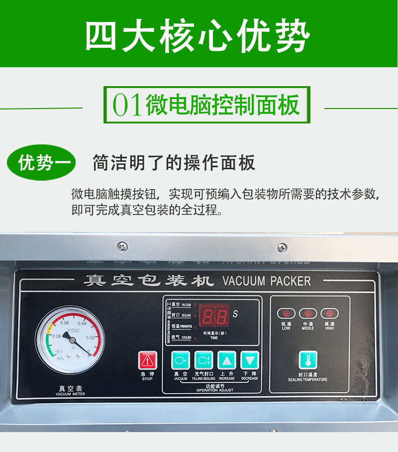 - 操作簡便:通常只需將物品放入真空室,設(shè)置好相關(guān)參數(shù),按下啟動按鈕,即可自動完成抽真空、封口等操作,無需復(fù)雜的操作技能和經(jīng)驗(yàn)