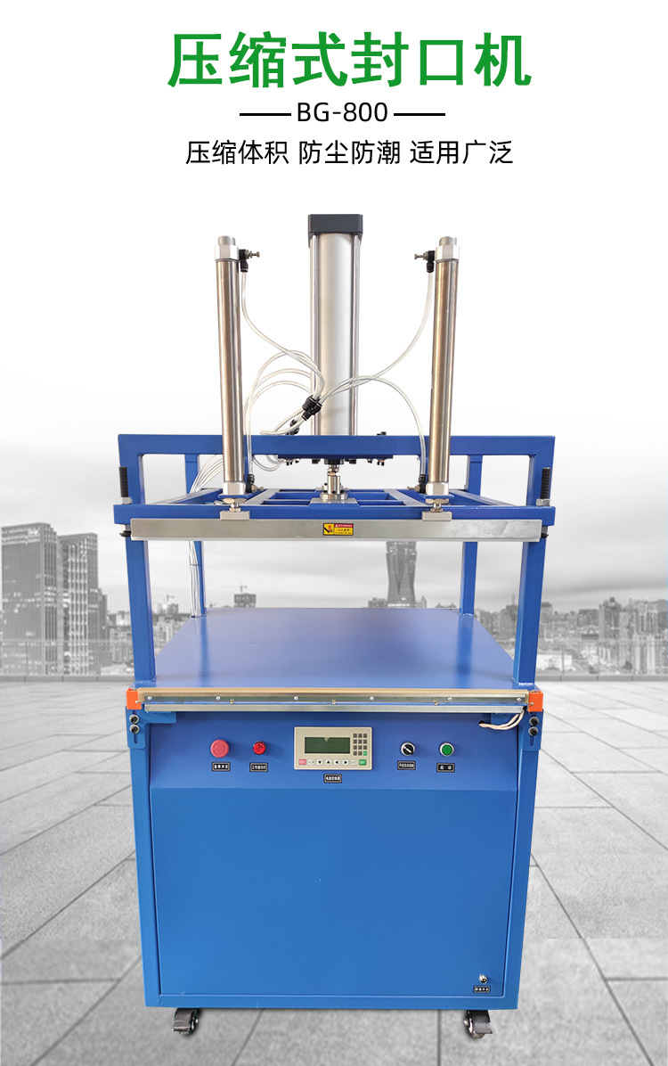 - 外抽式真空壓縮封口機(jī):將包裝袋放在機(jī)器外部的封口槽上,把吸氣口插入袋內(nèi)進(jìn)行抽氣和封口。這種方式適用于體積較大、形狀不規(guī)則的物品包裝,如棉被、羽絨服等的真空收納。