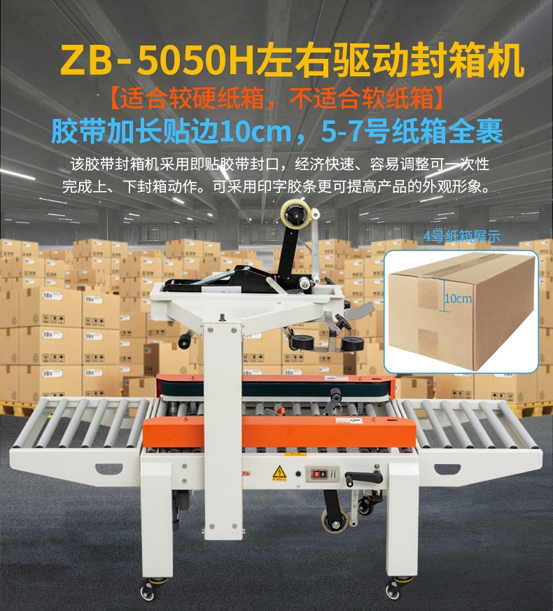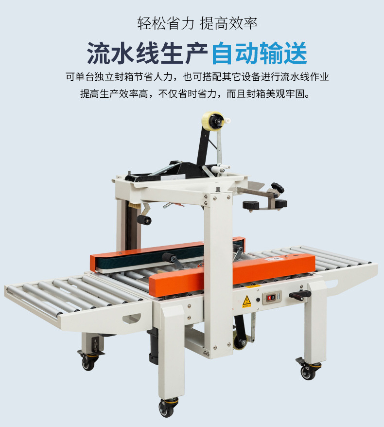 - 減少人工操作:在封箱過程中,幾乎不需要人工干預(yù),只需要將紙箱放置在進(jìn)料輸送帶上即可。這不僅提高了工作效率,還減少了人工封箱可能出現(xiàn)的誤差,如膠帶粘貼不整齊、封口不牢固等情況。