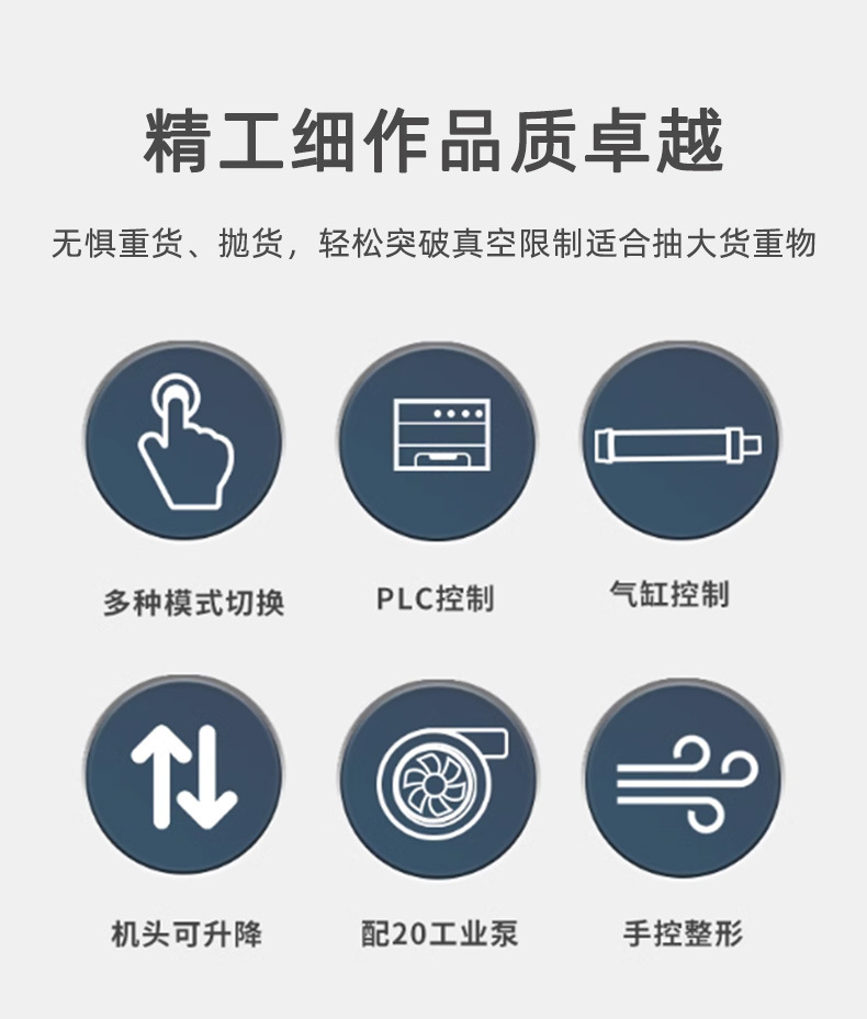 立式可升降真空包裝機立式升降的設計使得包裝過程更加高效。它可以適應不同尺寸和重量的產品