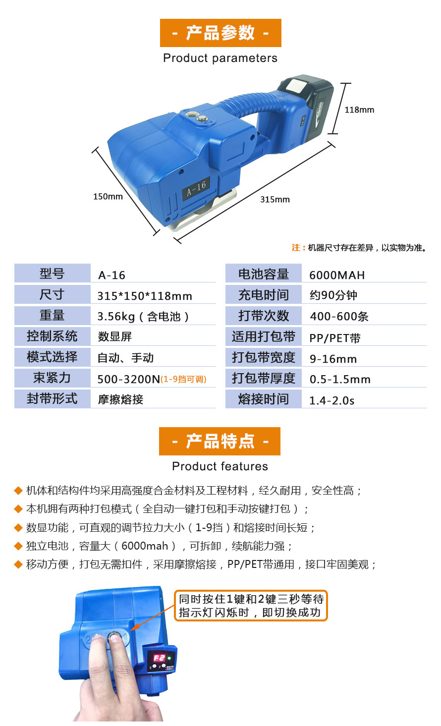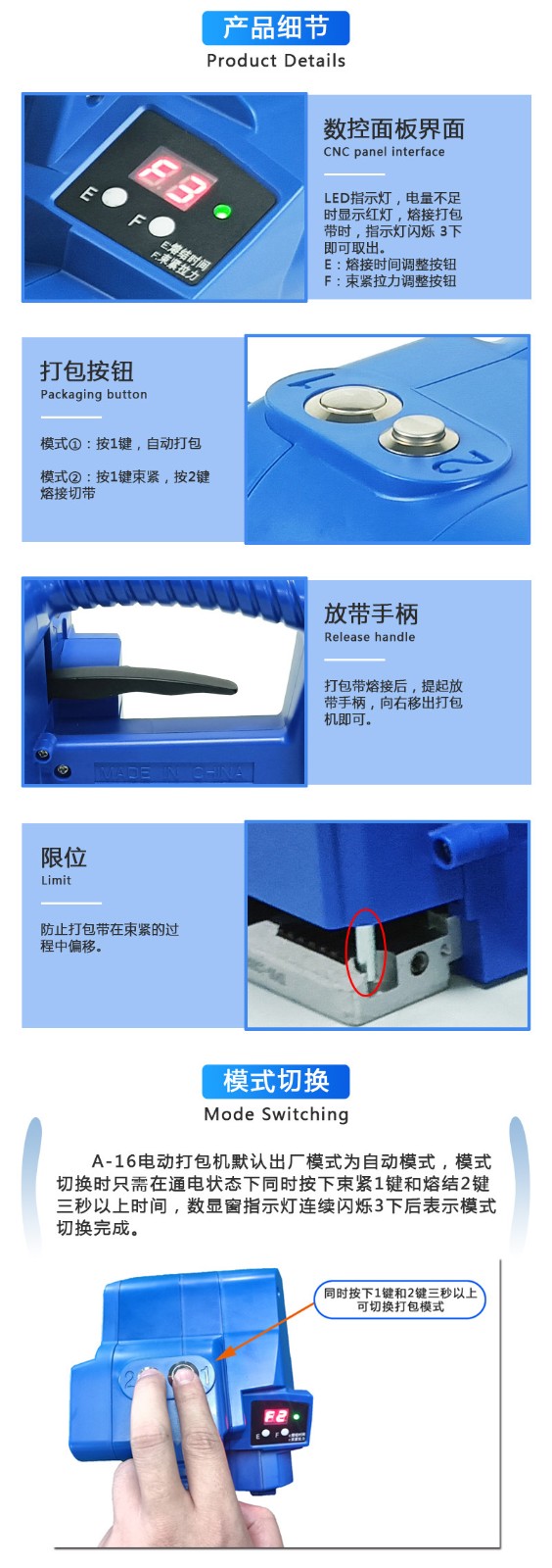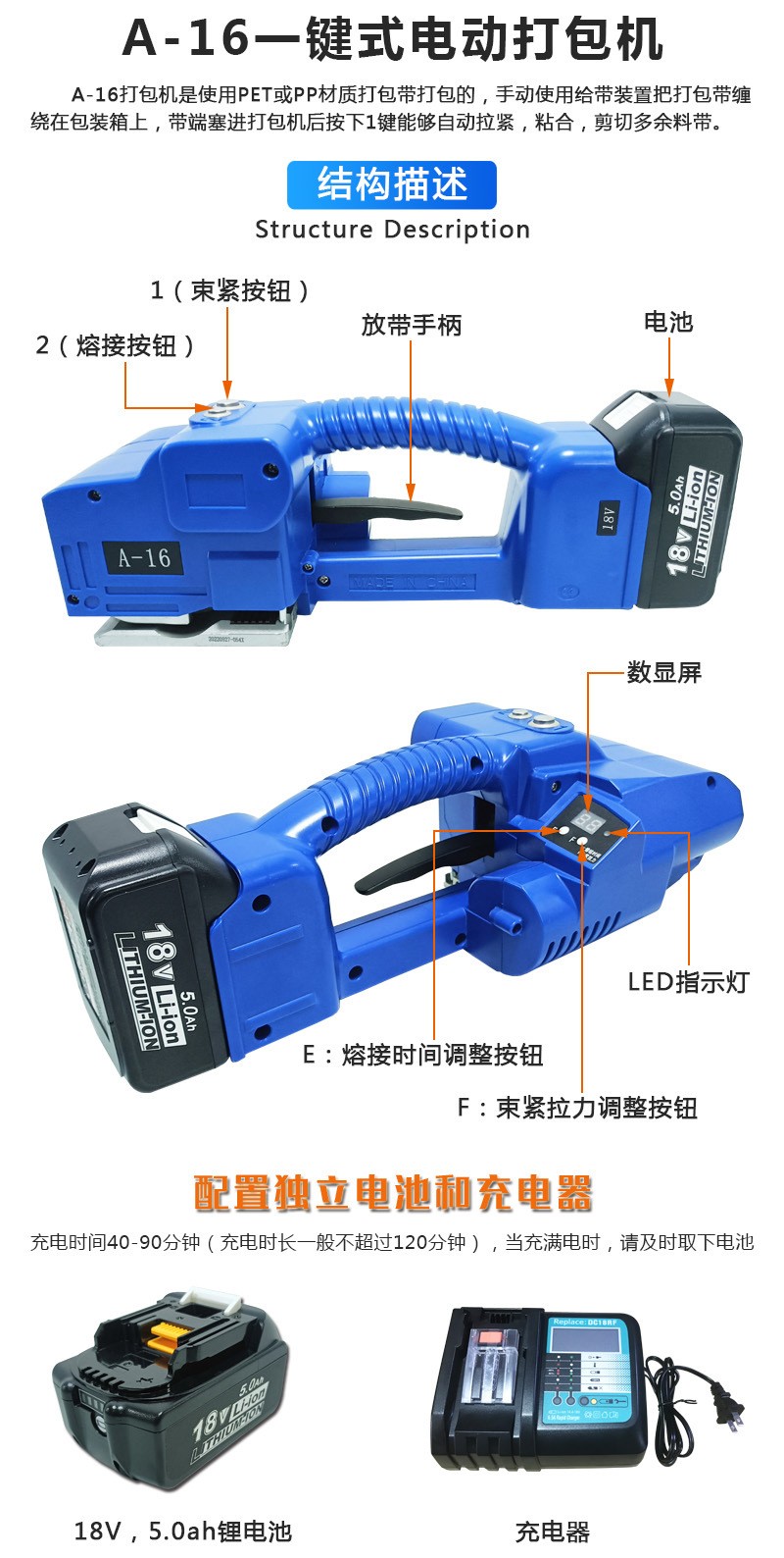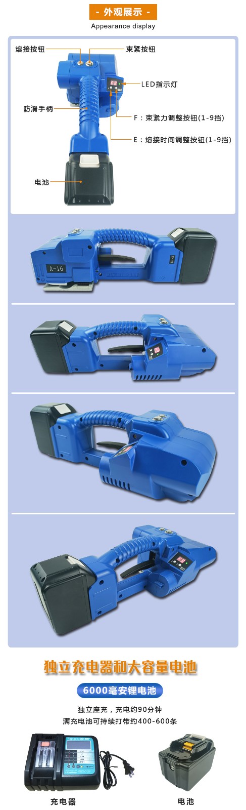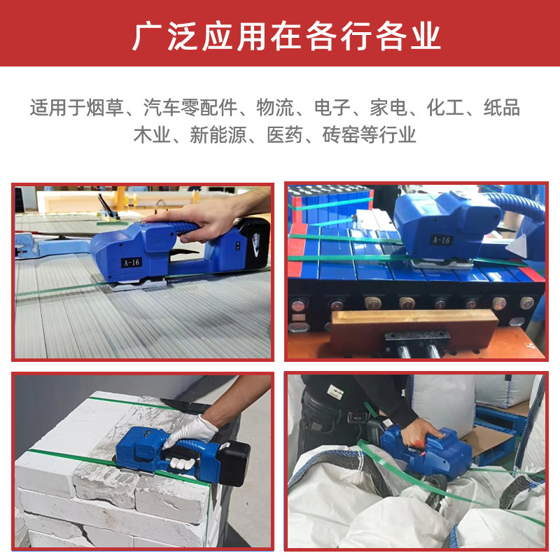 - 體積小、重量輕,便于攜帶到各種工作場所。無論是在倉庫的貨架旁、運輸車輛內(nèi)還是在戶外的臨時包裝點,都可以輕松使用。工作效率較高,對于小批量或臨時的打包任務(wù),能夠快速完成打包操作。例如,在活動現(xiàn)場對禮品盒或宣傳資料進行打包時,手持打包機可以迅速投入使用。