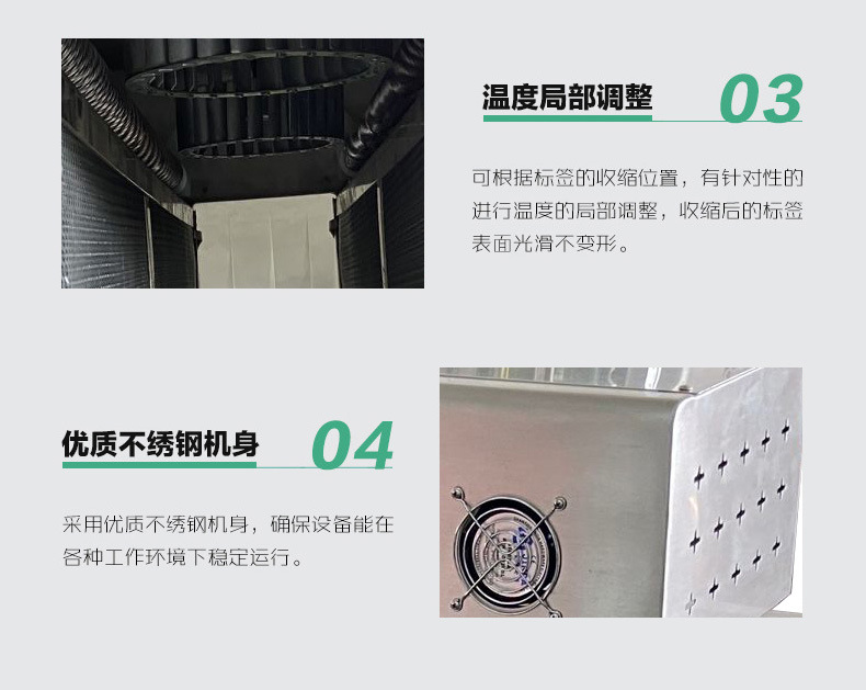 • 溫度控制:需根據收縮膜的材質和產品的特性,合理設置加熱溫度,避免溫度過高導致收縮膜破裂或產品損壞,溫度過低則收縮效果不佳 。
