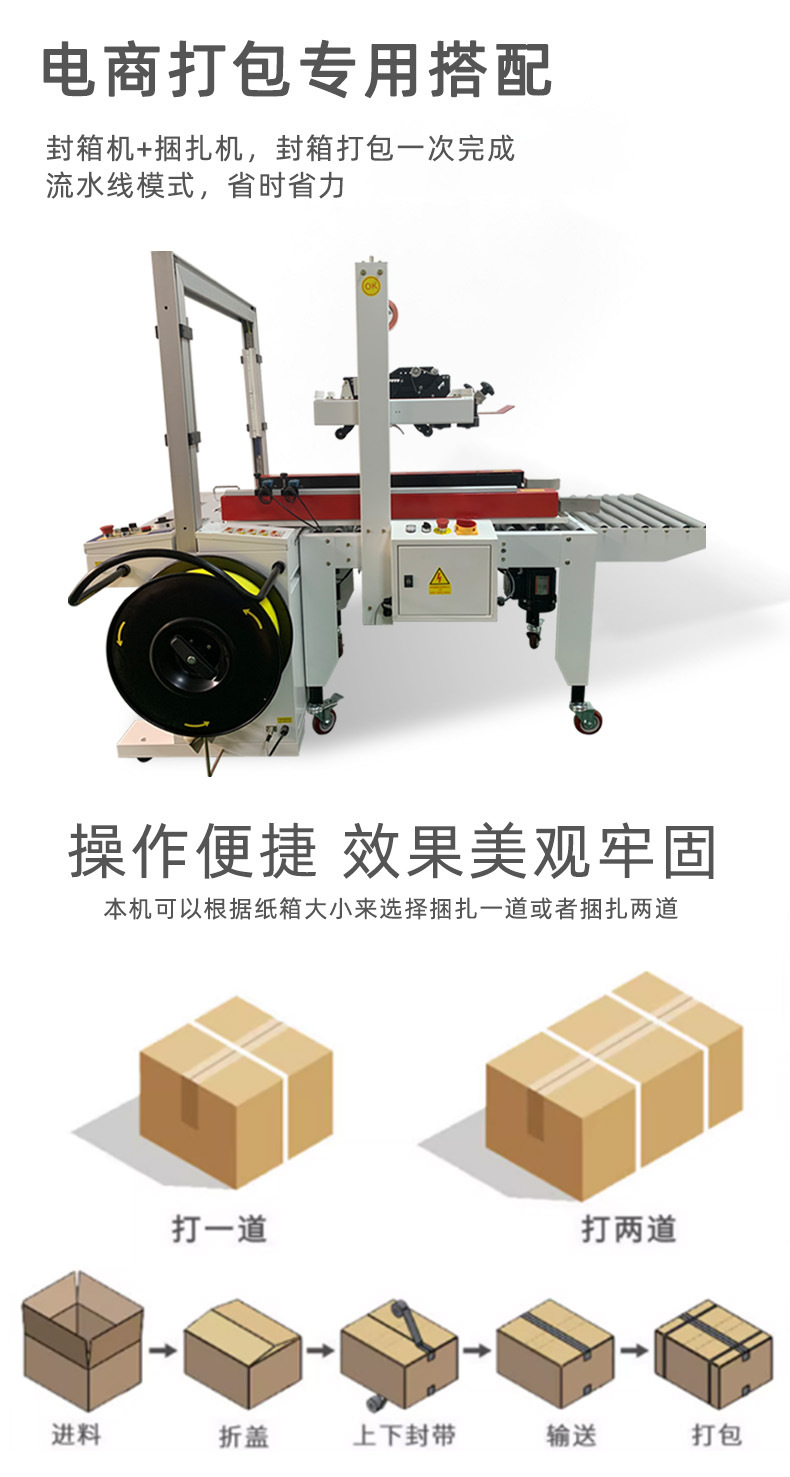 - 統一的包裝規格:日化企業生產的產品種類繁多,包裝規格各異。全自動封箱打包機可以根據不同的產品需求,快速調整封箱和打包參數,實現多種規格包裝的標準化操作。無論包裝何種產品,都能保證包裝的外觀整齊、統一,提升產品的整體形象和品牌價值。同時,標準化的包裝也便于企業進行庫存管理和物流配送,提高了供應鏈的效率。