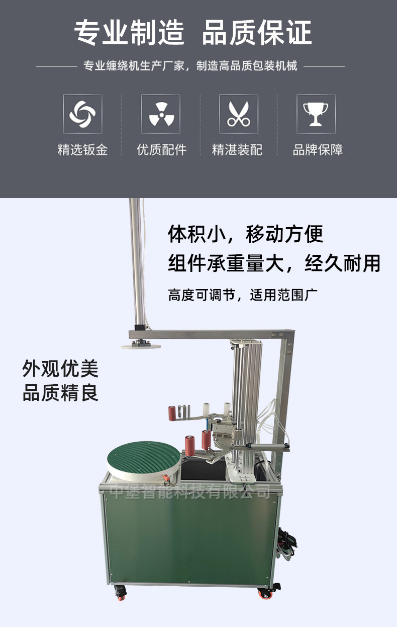 - 承載能力:工業用膠帶纏繞機需處理大型、重型貨物,承載能力強,托盤纏繞機的轉盤可承載數噸重的貨物。家用膠帶纏繞機僅用于小型輕便物品,如書本、小包裹等,承載能力一般在幾千克以內。