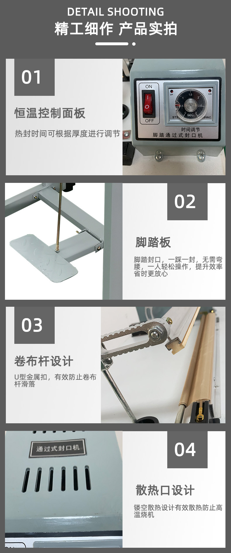 - 壓力不足:腳踏施加的壓力不夠,或者機器的壓力調節(jié)裝置出現(xiàn)問題,導致封口處的薄膜沒有被緊密壓合。