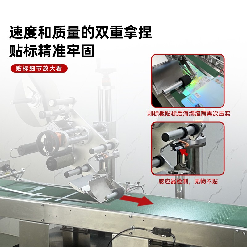 4. 貼標原理:當產品到達貼標位置時,控制系統根據傳感器檢測到的信號,觸發貼標頭動作。貼標頭在機械臂或其他傳動裝置的帶動下,從剝離板處抓取標簽,并以設定的速度和壓力將標簽準確地貼附在產品的指定位置上。貼標完成后,貼標頭返回初始位置,等待下一次貼標指令。