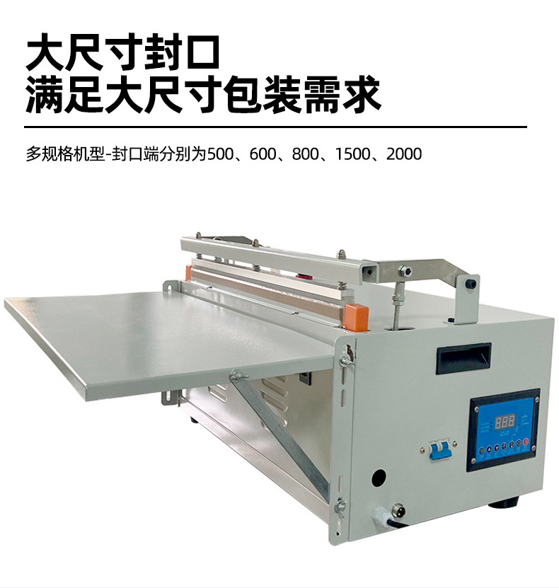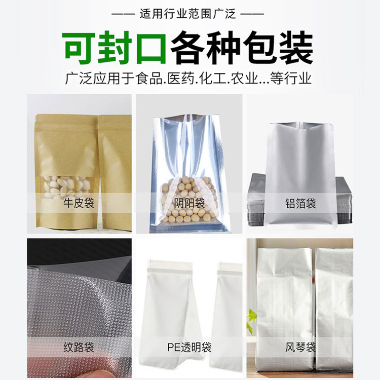 - 封口尺寸:封口的長度和寬度越大,每次封口所需的時間就越長,從而影響工作效率。例如,對大尺寸的包裝袋進(jìn)行封口,封口機的壓頭需要覆蓋更大的面積,加熱和施壓的時間會相應(yīng)增加。