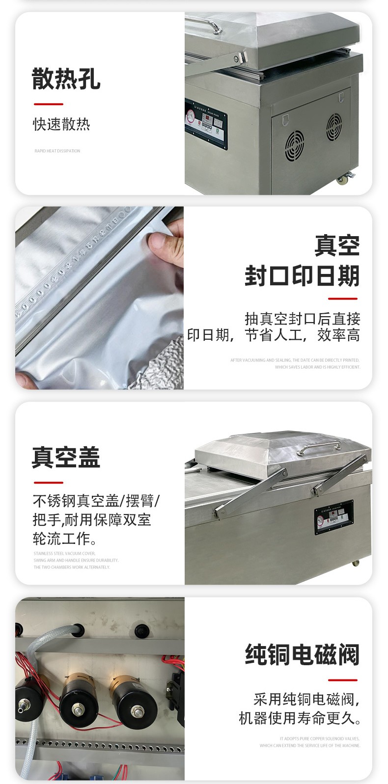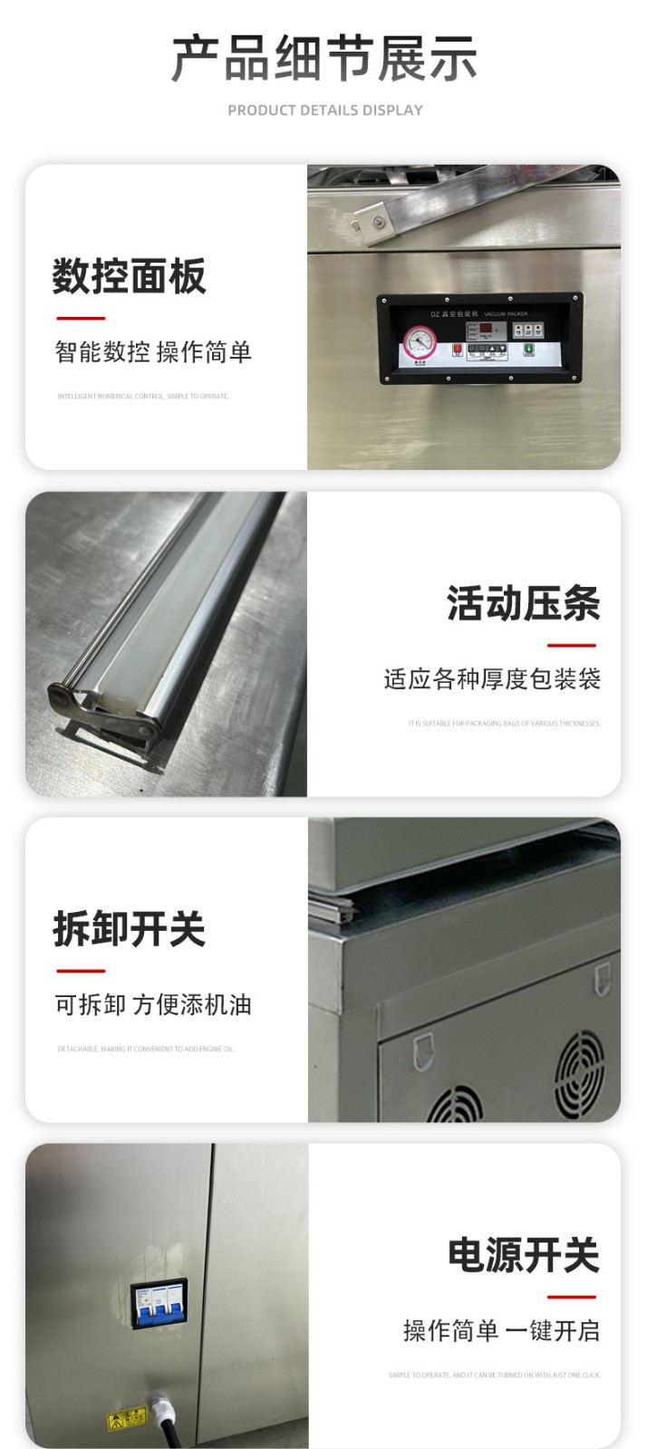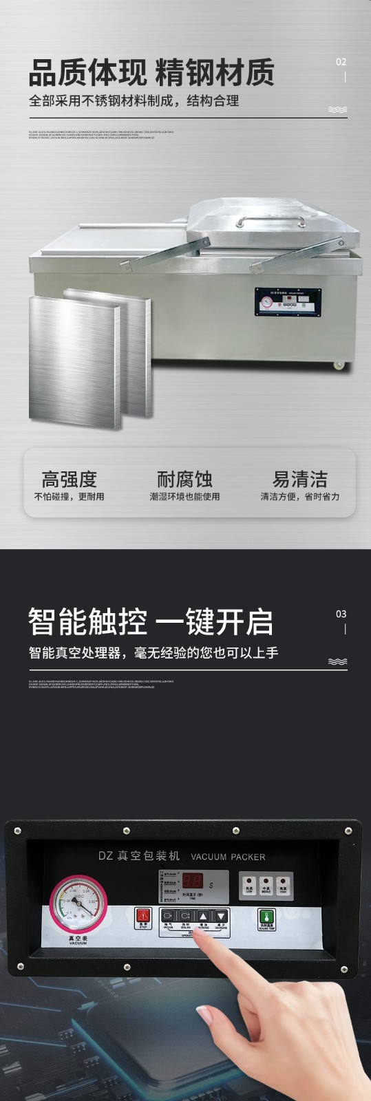 - 按下啟動按鈕,設備開始工作。首先真空泵啟動,對真空室進行抽真空操作,當真空度達到設定值后,抽真空停止,熱封裝置開始工作,對包裝袋進行封口。熱封完成后,真空室恢復常壓,此時可以打開真空室門,取出包裝好的產品。