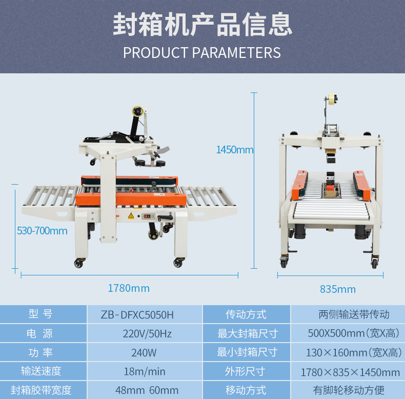 封箱機(jī)是一種用于對(duì)紙箱進(jìn)行封裝的設(shè)備,在各類生產(chǎn)企業(yè)和物流配送中心應(yīng)用廣泛。以下是關(guān)于封箱機(jī)的詳細(xì)介紹: