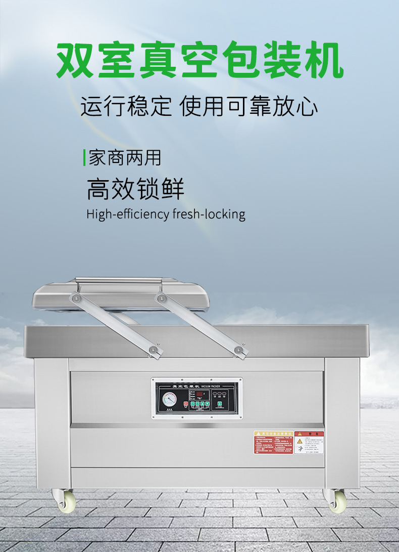 雙室真空包裝機可在真空包裝的基礎上,向包裝袋內充入氮氣、二氧化碳等惰性氣體或混合氣體,起到更好的防腐、防潮、防氧化等保質效果