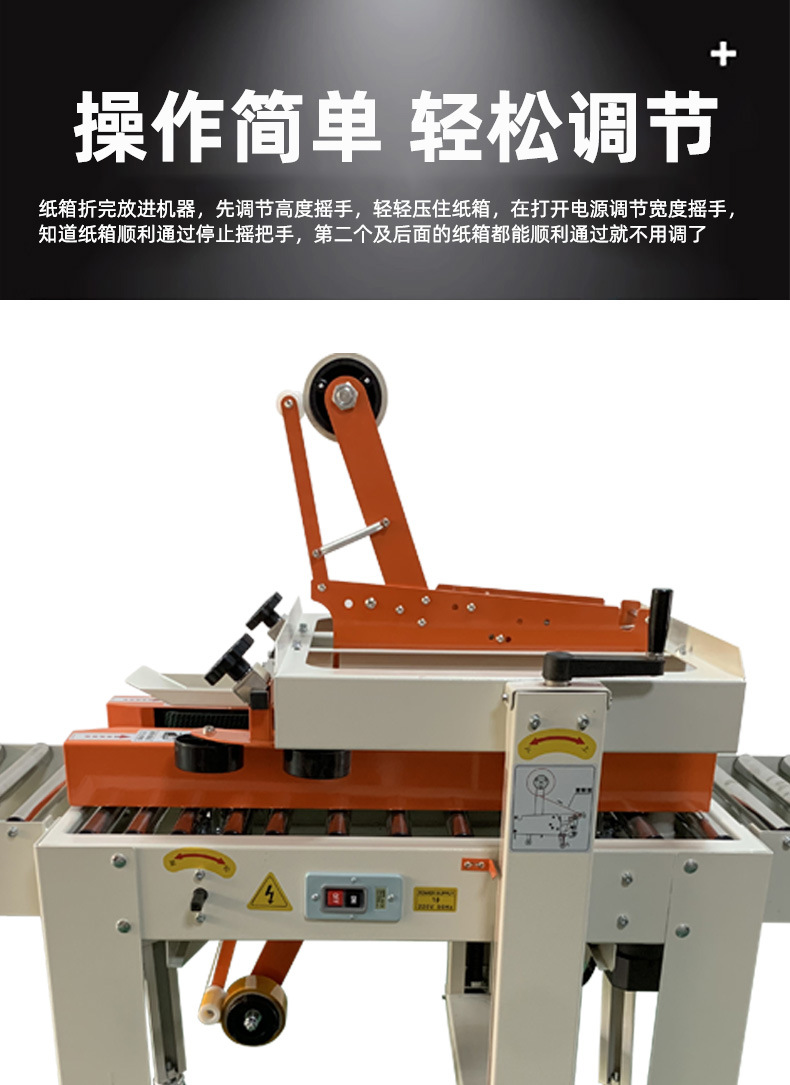適用范圍 廣泛應(yīng)用在家用電器、紡織、食品、百貨、醫(yī)藥、化工等行業(yè)。產(chǎn)品介紹 快速簡單的調(diào)整兩個手動輪子,完成機器紙箱尺寸要求的設(shè)置.頂部和底部是同步封起來的(頂部已經(jīng)封起來的紙箱必須引入到機器中去)