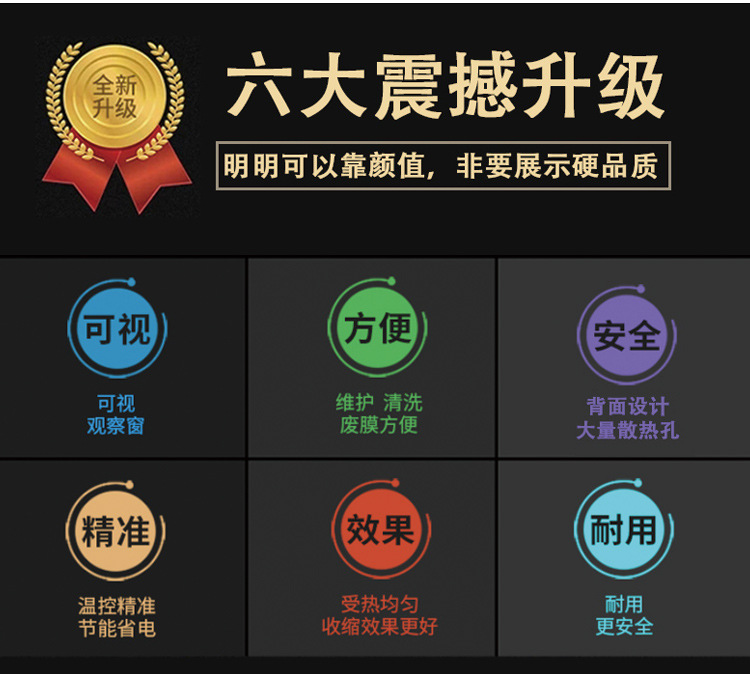蒸汽式熱收縮機適用范圍 玻璃瓶、發泡膠、紙盒、玩具、電子、電器、文具、圖書、唱片、五金工具、日用品、藥品、化妝品、飲料、水果、紀念標簽等物品包裝