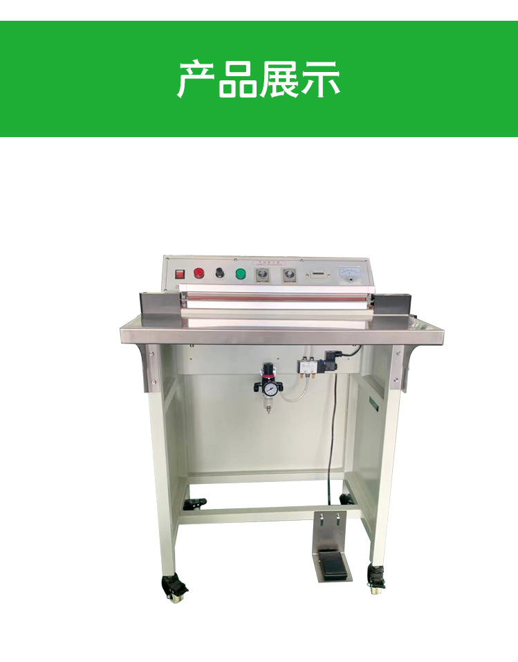 塑料薄膜封口機主要對于一些封口長度小于600mm、重量小于50kg的塑料袋或復合袋的間歇包裝封口,特殊情況的訂貨可以將封口長度增大至700mm、800mm、1000mm,它還可以直接與連接的輸送臺和生產(chǎn)流水線配套。