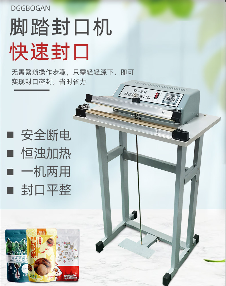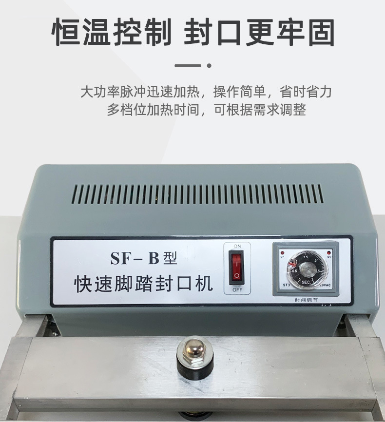 此外,?腳踏封口機(jī)還適用于各種塑料薄膜、?復(fù)合薄膜及鋁塑薄膜的封合,?廣泛應(yīng)用于食品、?土特產(chǎn)、?糖果、?茶葉、?醫(yī)藥、?五金等行業(yè)。?這種設(shè)備的操作簡(jiǎn)單,?加熱時(shí)間可調(diào),?接通電源即可工作,?使得它在商店、?家庭、?工廠等環(huán)境中成為方便且經(jīng)濟(jì)的封口解決方案
