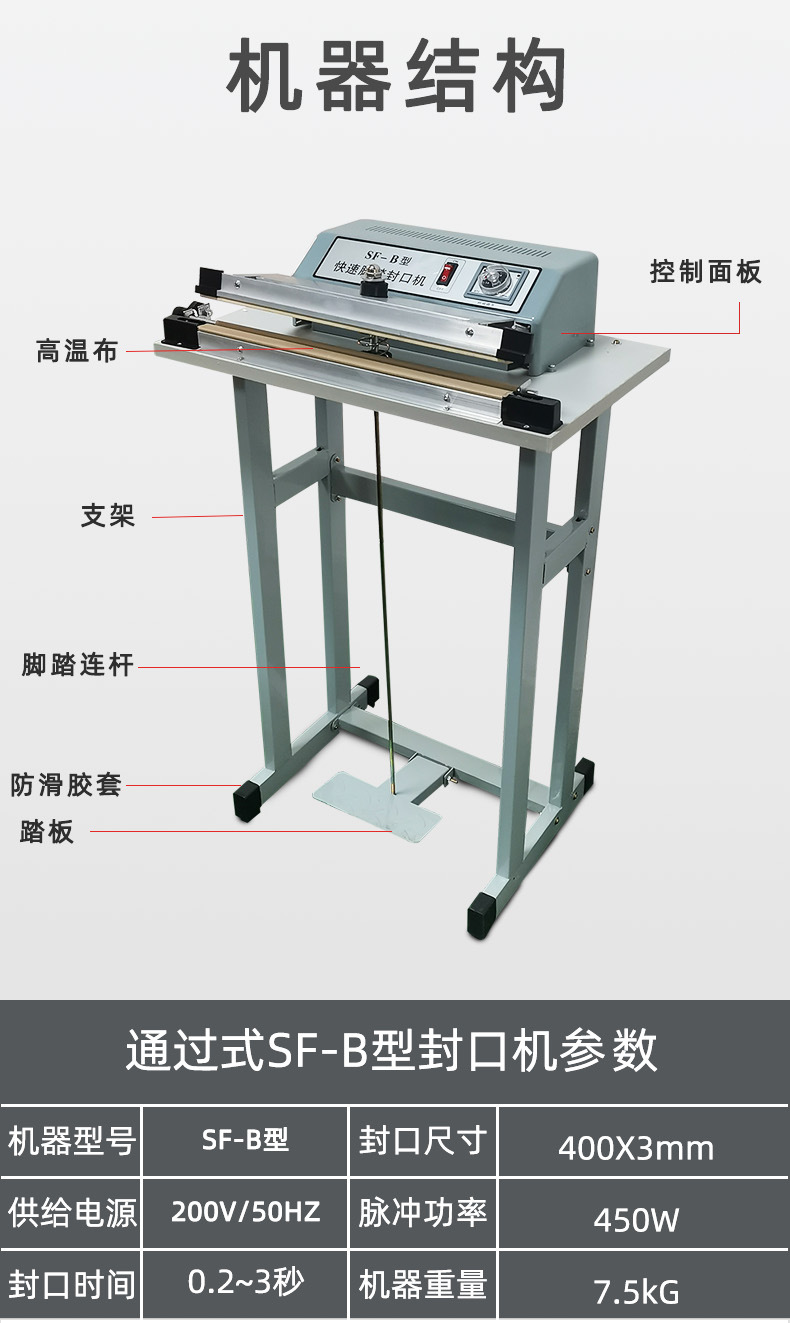 腳踏封口機(jī)是一種理想的封口設(shè)備,?適用于各種塑料袋薄膜的封口及制袋。?它特別適用于醫(yī)藥、?農(nóng)藥、?食品、?日化、?潤(rùn)滑油等行業(yè)的鋁箔袋、?塑料袋、?復(fù)合袋的封口。?這種設(shè)備利用電氣脈沖技術(shù),?能夠顯著縮短封口時(shí)間,?從原來(lái)的2-4秒縮短至0.2秒,?具有投資少、?效益高、?封口長(zhǎng)度長(zhǎng)、?操作簡(jiǎn)單等特點(diǎn)。?因此,?腳踏封口機(jī)被廣泛應(yīng)用于食品、?醫(yī)藥、?土特產(chǎn)、?電器軟件、?工廠、?商店、?服務(wù)行業(yè)等領(lǐng)域,?成為這些行業(yè)中不可或缺的封口設(shè)備