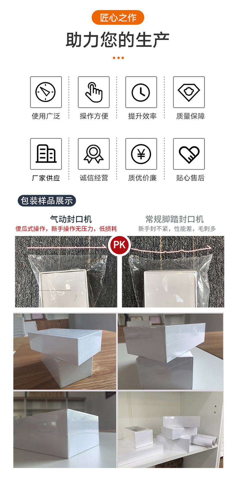 氣動封口機是一種利用壓縮空氣作為動力的封口設備,?其應用范圍廣泛,?特別是在化工、?食品、?醫藥、?日化等行業得到了廣泛應用。?這些行業選擇氣動封口機的原因主要包括:?