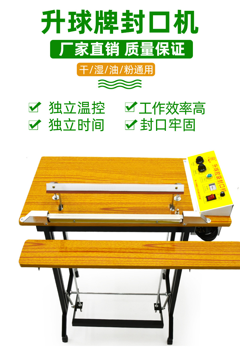 升球牌是根據國內外先進的機型基礎上,重新設計制造而成,適用于所有塑料袋薄膜封口及制袋,是食品廠,化妝品廠,藥廠等單位的理想封口設備。適用范圍 適用于醫藥,農藥,食品,日化,潤滑油等行業的鋁箔袋,塑料袋,復合袋理想封口機械