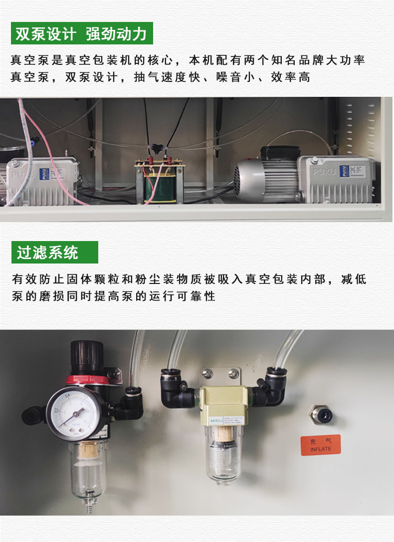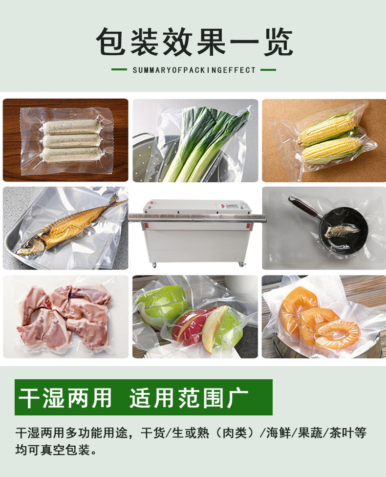 外抽真空包裝機(jī)通過抽氣嘴放入被包裝物的包裝袋內(nèi),?抽空空氣后完成封口,?實(shí)現(xiàn)了抽真空包裝的全自動(dòng)化。?這種機(jī)器采用了國際先進(jìn)的控制技術(shù),?具有自動(dòng)定型包裝袋、?抽真空等功能,?從而使產(chǎn)品具有外觀美觀、?保鮮、?防變質(zhì)和延長儲(chǔ)存時(shí)間等特點(diǎn)。?外抽式真空機(jī)特別適用于食品、?藥物、?土特產(chǎn)、?電子元件、?服裝等進(jìn)行真空、?封口包裝,?不受包裝物大小及體積的限制,?任意進(jìn)行真空包裝。?其適用范圍廣泛,?經(jīng)濟(jì)效益高,?使用方便,?能夠有效地防止物料的迅速氧化和抑制好氧性細(xì)菌的繁殖所引起的物料腐敗和變質(zhì)。?