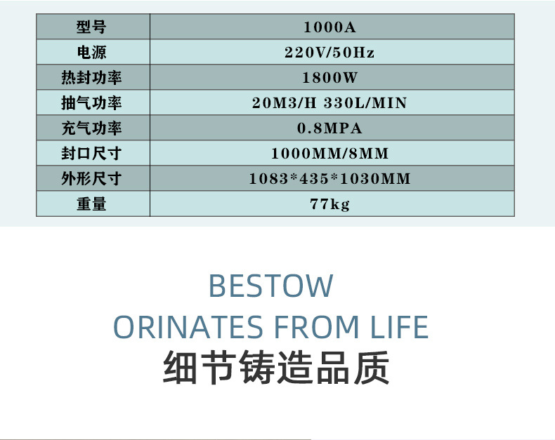 外抽真空充氣包裝在真空后再充入氮氣、二氧化碳、氧氣單一氣體或二 三種氣體的混合氣體。其氮氣是惰性氣體,起充填作用,使袋內保持正壓 ,以防止袋外空氣進入袋內,對食品起到一個保護作用。其二氧化碳能夠溶于各類脂肪或水,引成酸性較弱的碳酸,有抑制霉菌、腐敗細菌等微生物的活性。其氧氣具有抑制厭氧菌的生長繁殖,保持水果、蔬菜的新鮮及色彩,高濃度氧氣可使新鮮肉類保持其鮮紅色。水果蔬菜的新鮮可是營養不流失。